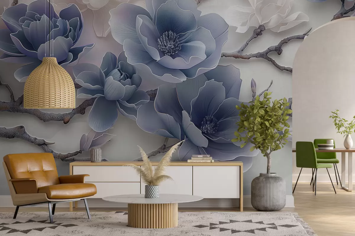 Fotomurales Flores de magnolia en relieve azul sobre una rama elegante Nr. w01359v1