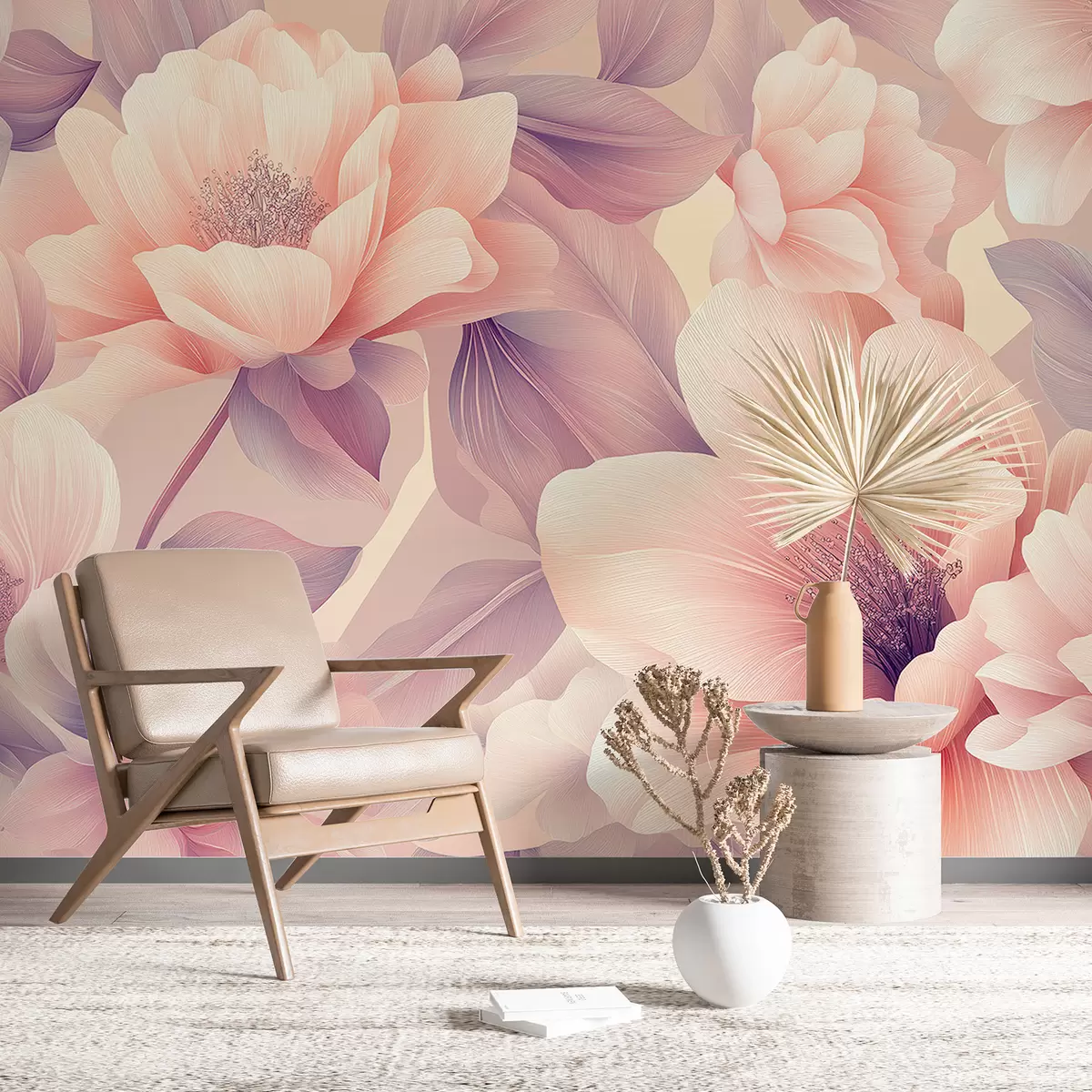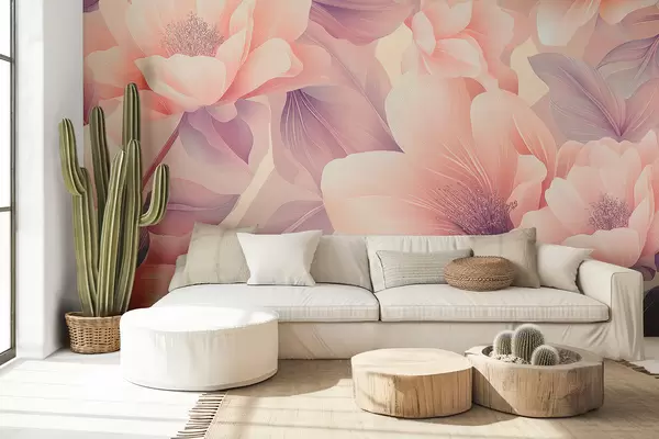 Fotomurales Hermosas flores acrílicas, composición floral, naturaleza, colores pastel beige y rosa. Nr. w01449