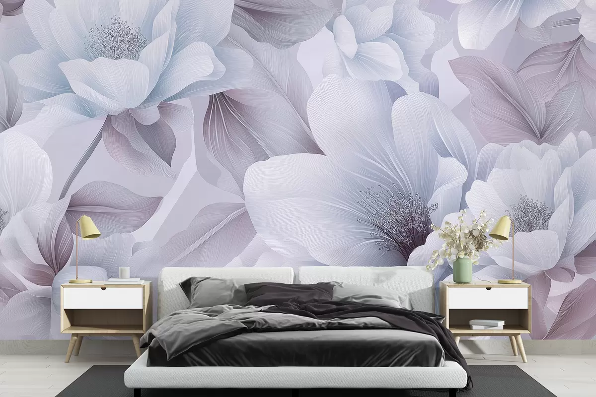 Fotomurales Hermosas flores acrílicas, composición floral, naturaleza, colores pastel azul y morado. Nr. w01449v2