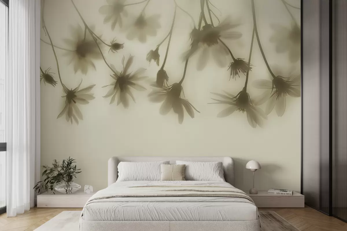 Fotomurales Delicadas flores en la niebla colgando desde arriba en colores pastel. Nr. w01469v1