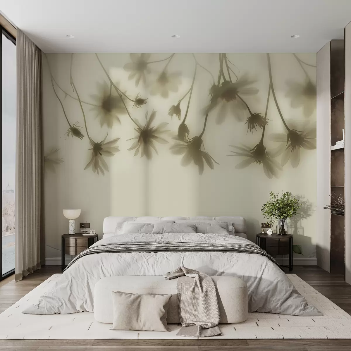Fotomurales Delicadas flores en la niebla colgando desde arriba en colores pastel. Nr. w01469v1