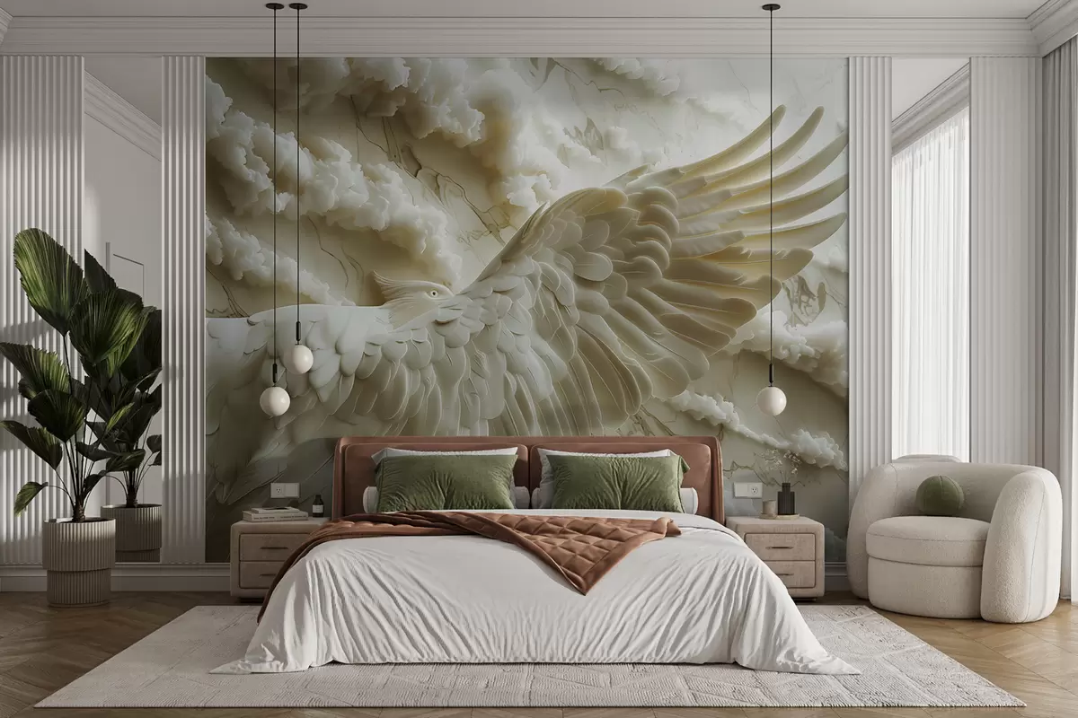 Fotomurales Águila blanca voladora en 3D sobre un fondo de nubes y mármol Nr. w01476