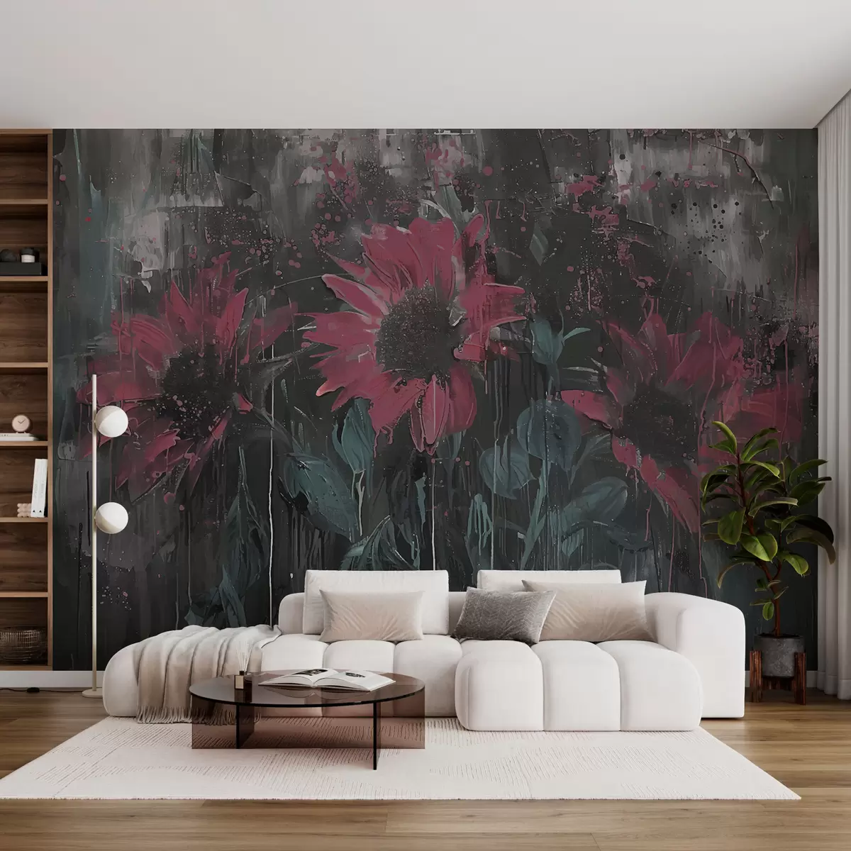 Fotomurales Imagen abstracta de girasol, fondo gris oscuro y tonos rojo-rosados Nr. w01480v1