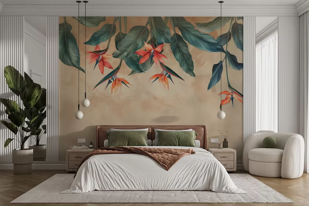 Fotomurales Floración tropical sobre fondo de acuarela beige Nr. w01485