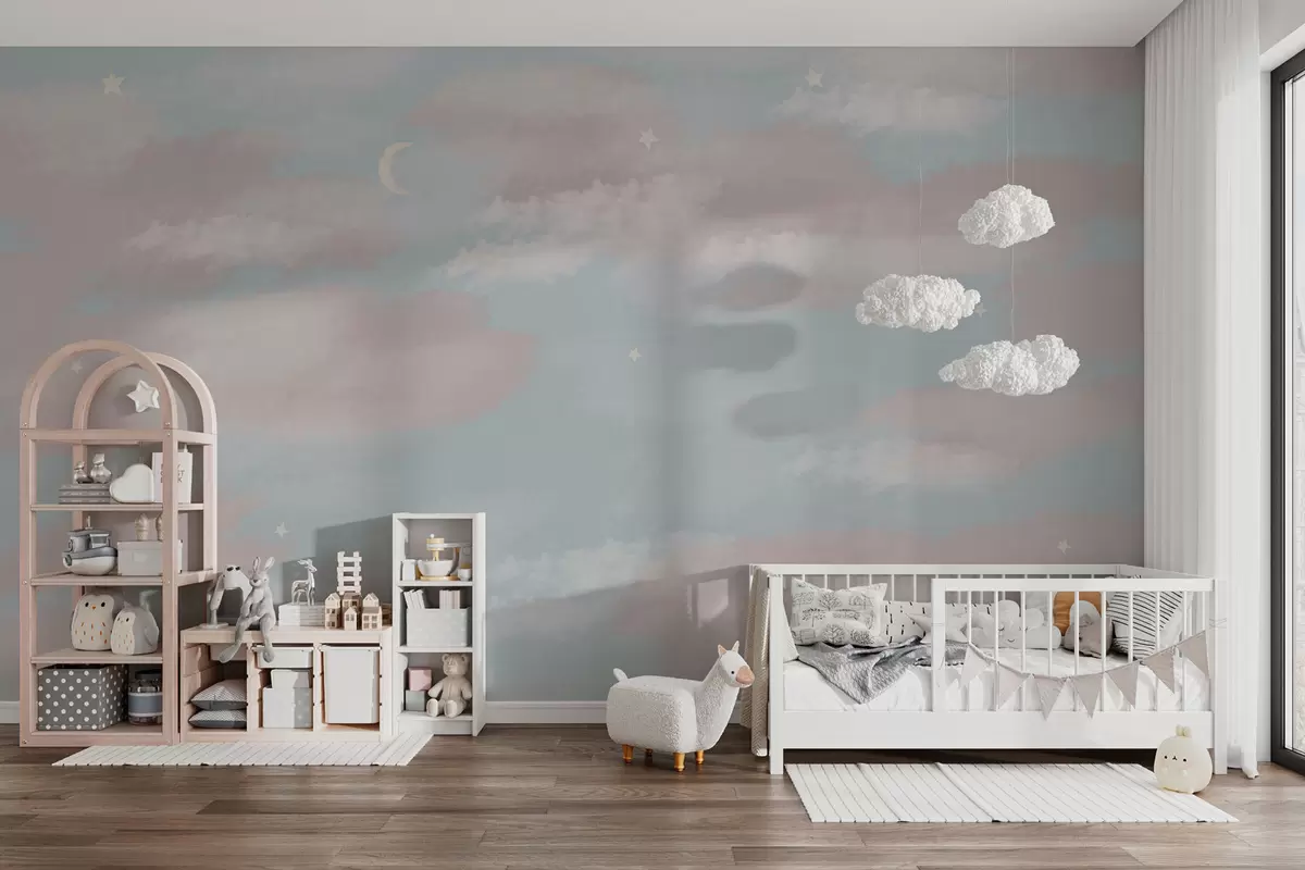 Fotomurales Cielo mágico con nubes, luna y estrellas Nr. w01549