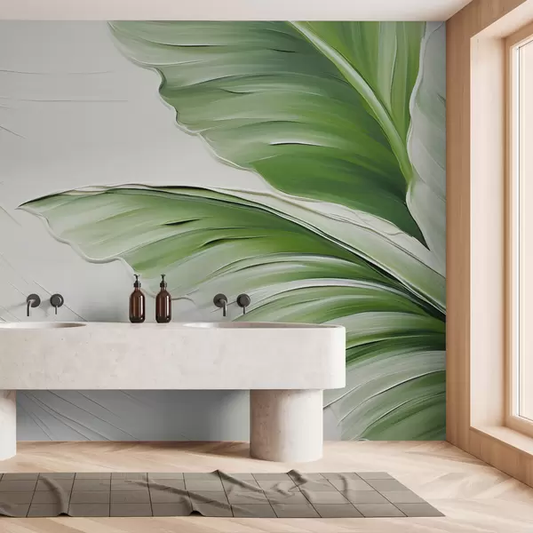 Fotomurales Hojas verdes sobre luz imitación de pinceladas Nr. w01557