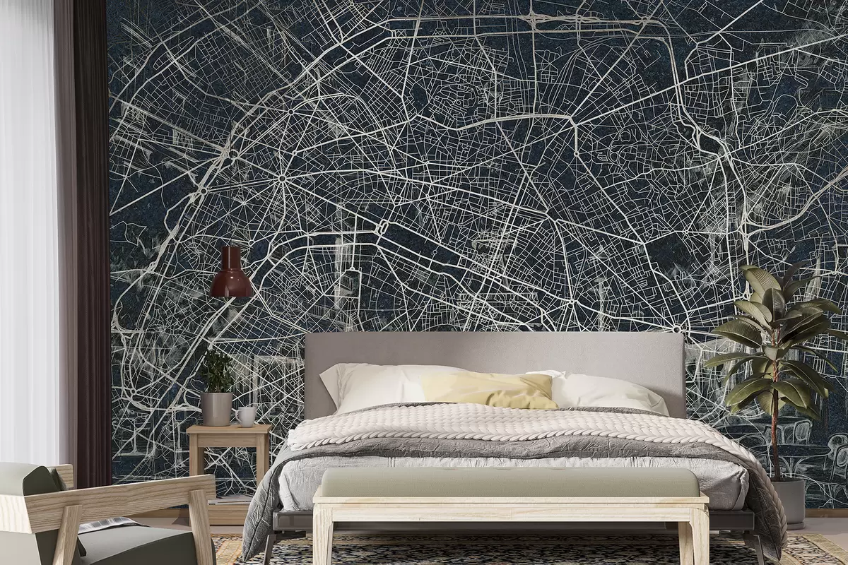 Fotomurales Mapa de la ciudad de París, dibujo lineal, arquitectura, Francia, colores oscuros Nr. w01697v1