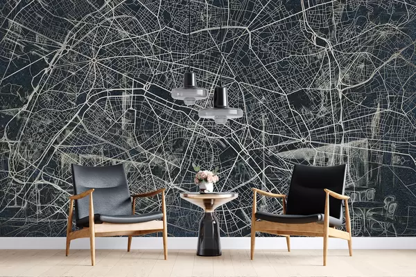 Fotomurales Mapa de la ciudad de París, dibujo lineal, arquitectura, Francia, colores oscuros Nr. w01697v1
