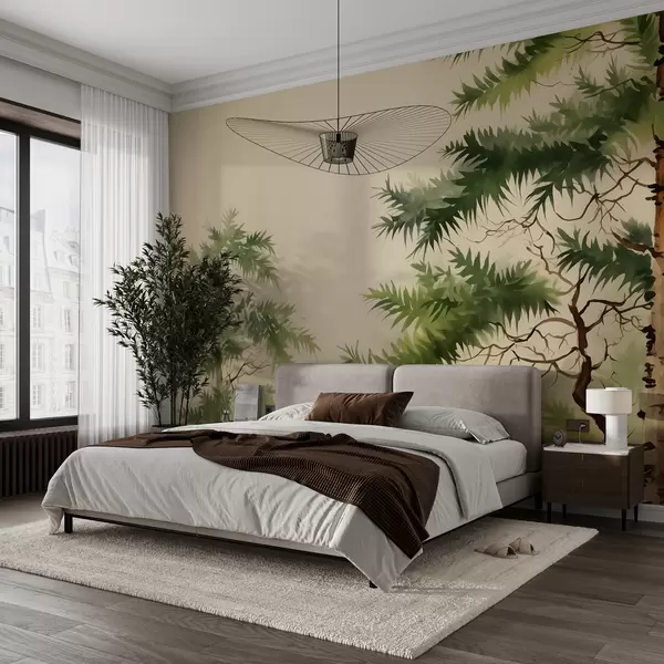 Fotomurales Pinos en el bosque acuarela, color verde Nr. w01726