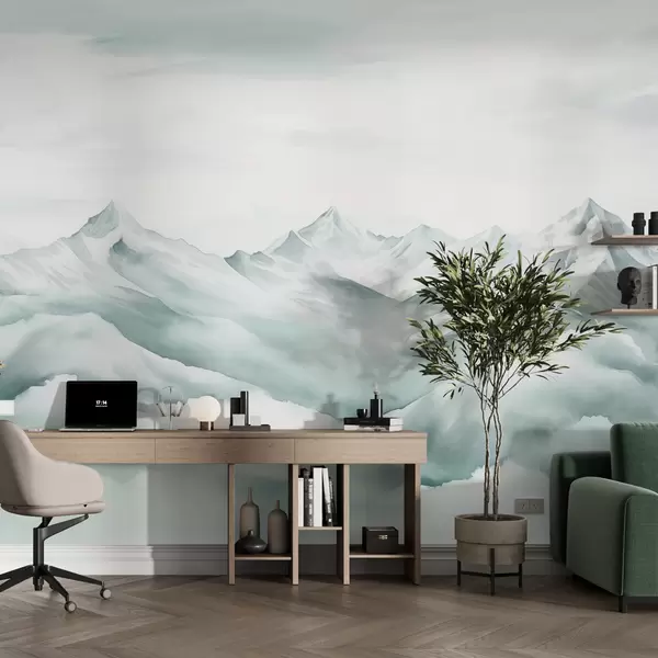 Fotomurales Paisaje de montaña, acuarela, colores azules suaves Nr. w01787v2