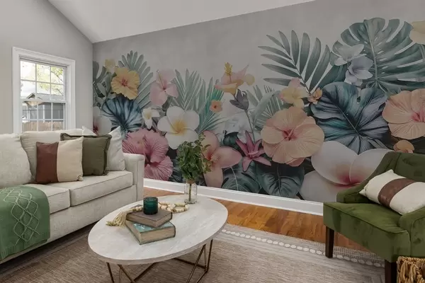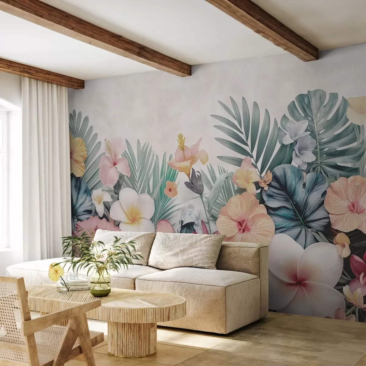 Fotomurales Variedad de flores en hojas tropicales Nr. w01897