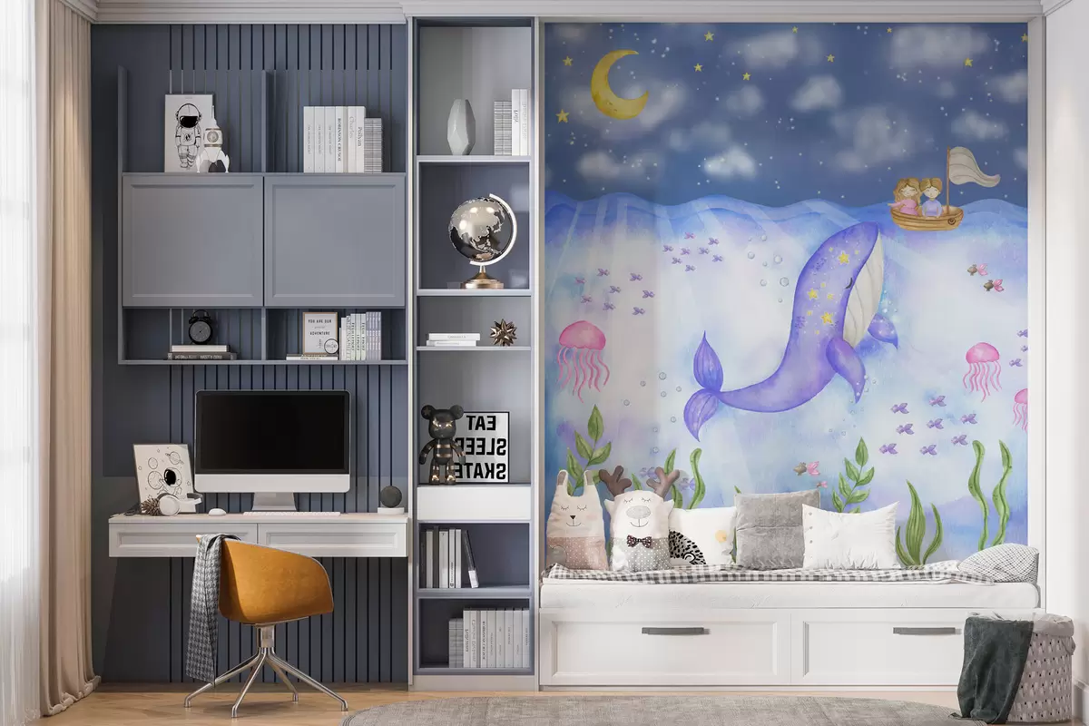 Fotomurales Una ballena nada bajo una noche estrellada Nr. w01965