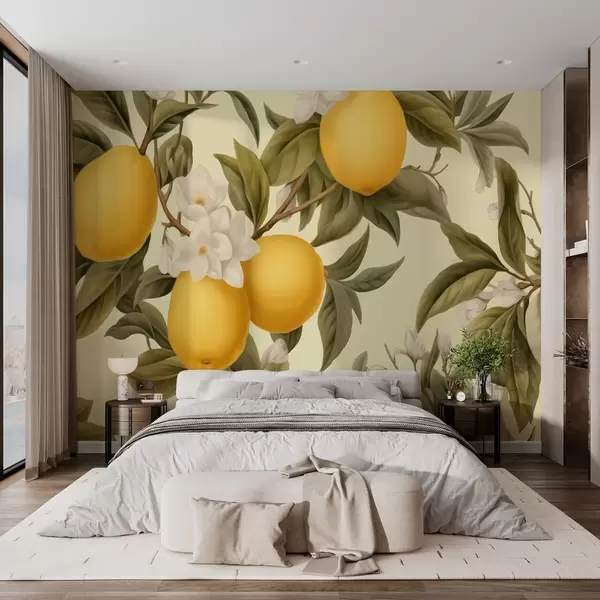 Fotomurales Jugosos limones con flores blancas en las ramas Nr. w01977