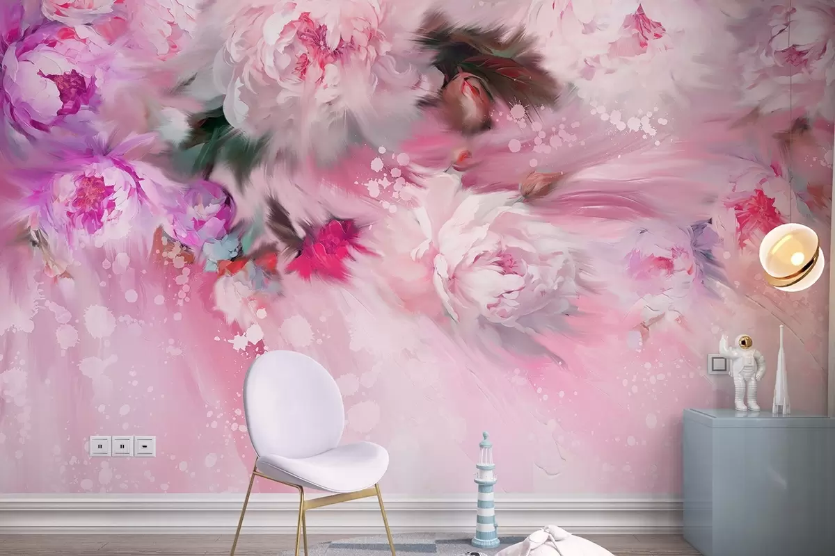 Fotomurales Peonías acrílicas, pinceladas, florales, suaves colores rosa pastel Nr. w02021v1