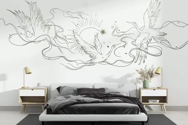 Fotomurales Pájaros voladores, dibujo lineal, minimalismo, paleta de colores grises Nr. w02022v1