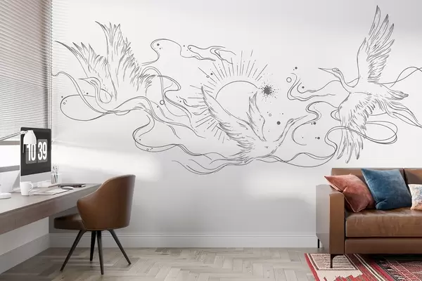 Fotomurales Pájaros voladores, dibujo lineal, minimalismo, paleta de colores grises Nr. w02022v2