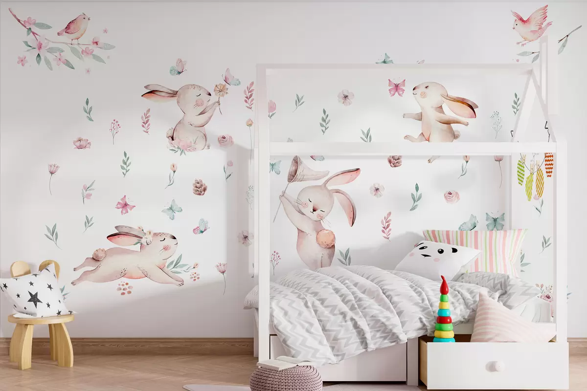 Fotomurales Conejitos de cuento en flores Nr. w02025