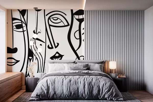 Fotomurales Caras abstractas en estilo de decoración de arte lineal Nr. w02033