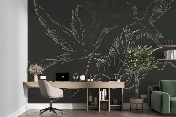 Fotomurales Pájaros volando, minimalismo, arte lineal, naturaleza, fondo oscuro Nr. w02061v3