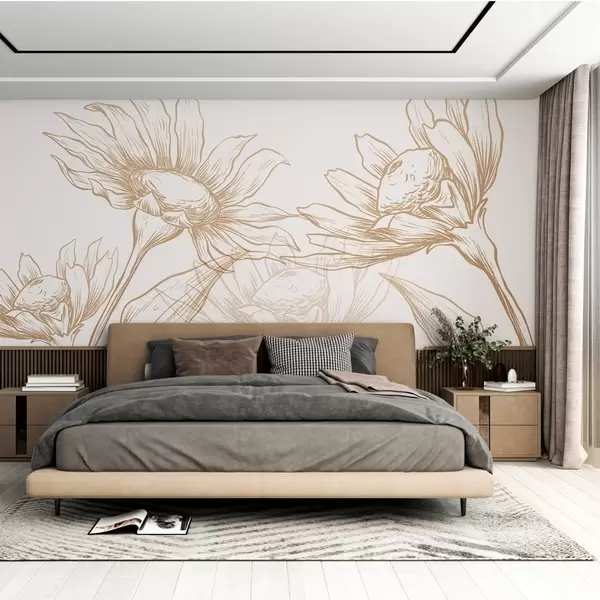 Fotomurales Grandes flores de crisantemo, en líneas, en tonos marrones y amarillos Nr. w02099v1