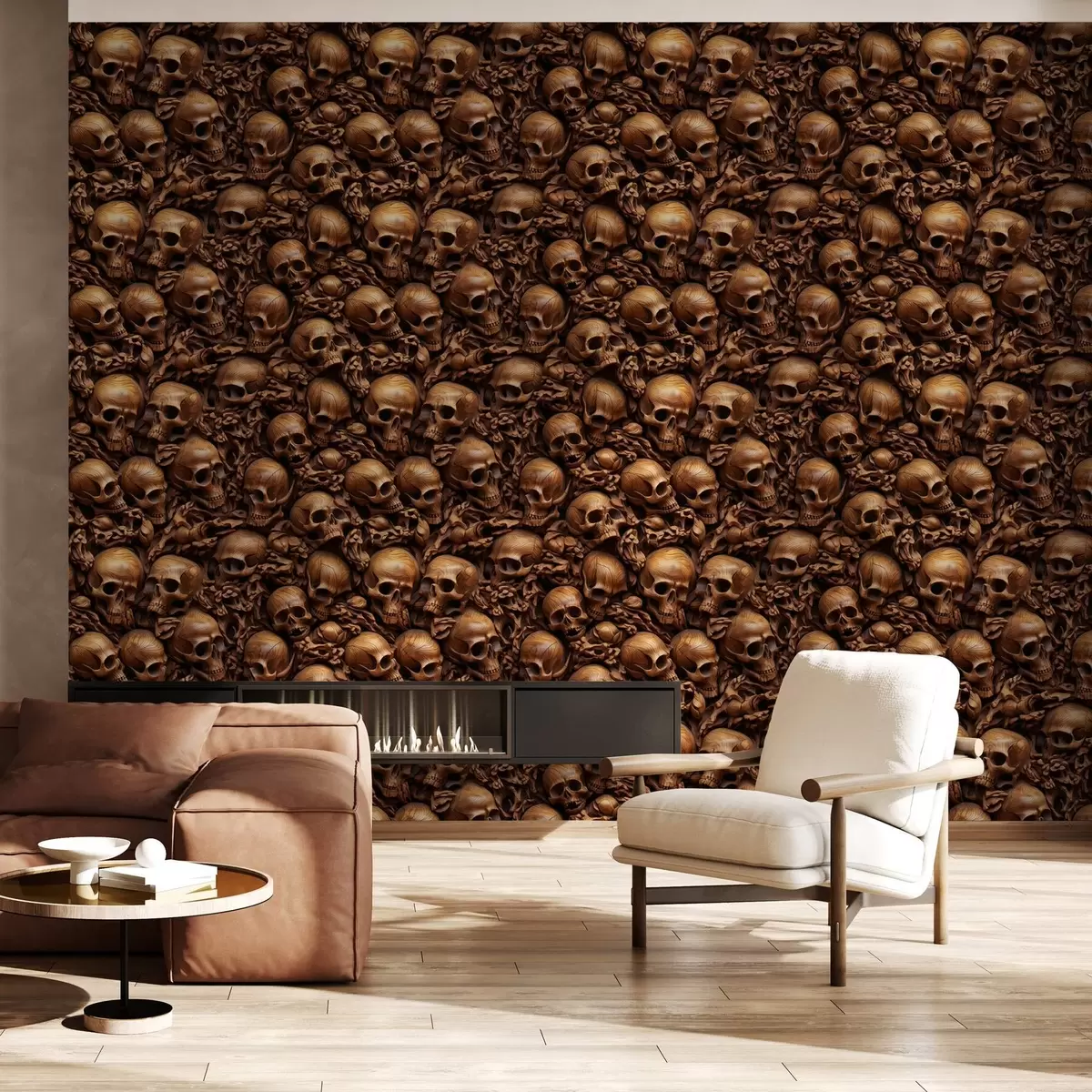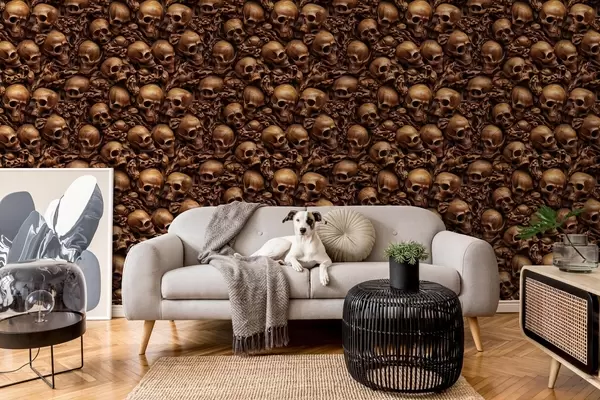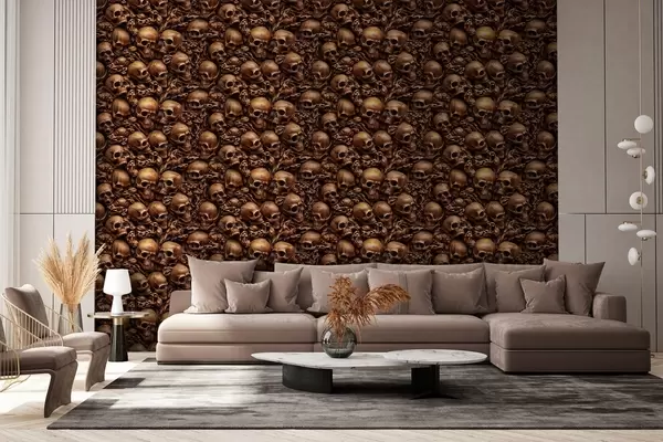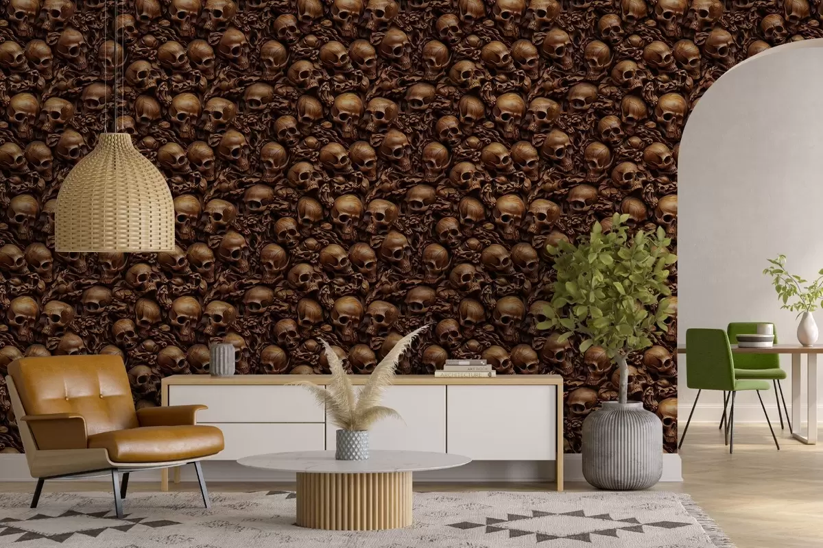 Fotomurales Papel pintado con imitación de calaveras tridimensionales talladas en madera Nr. w02121