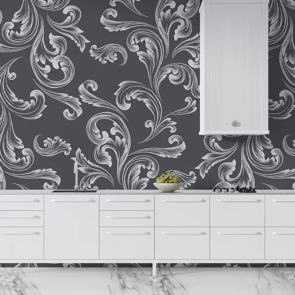 Fotomurales Damasco, adorno monograma, tono gris Nr. w02247v1