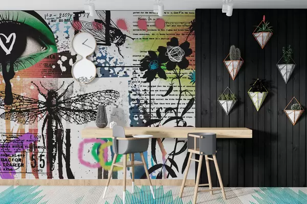 Fotomurales Inscripciones estilo graffiti, flores, figuras Nr. w02255