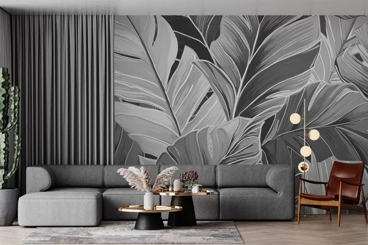 Fotomurales Follaje tropical monocromo en blanco y negro Nr. w02261