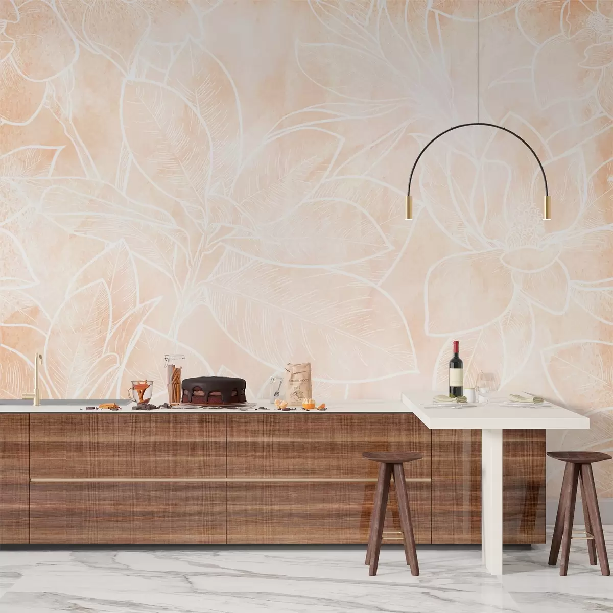 Fotomurales Hojas de contorno sobre fondo texturizado Nr. w02306