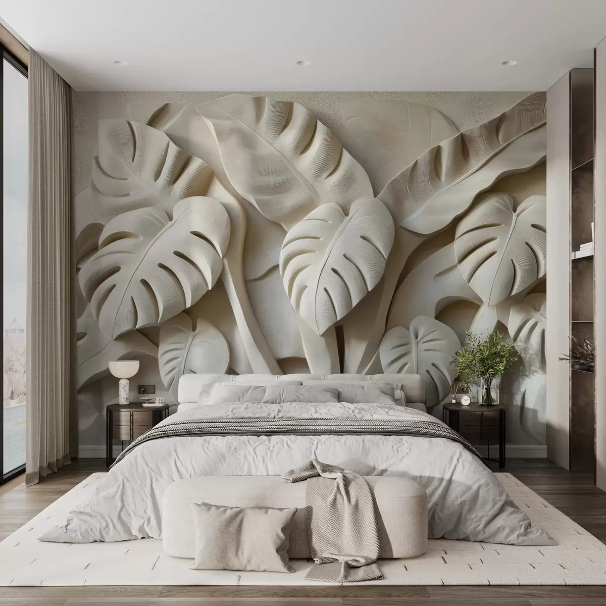 Fotomurales Bajorrelieve de grandes hojas de monstera Nr. w02312
