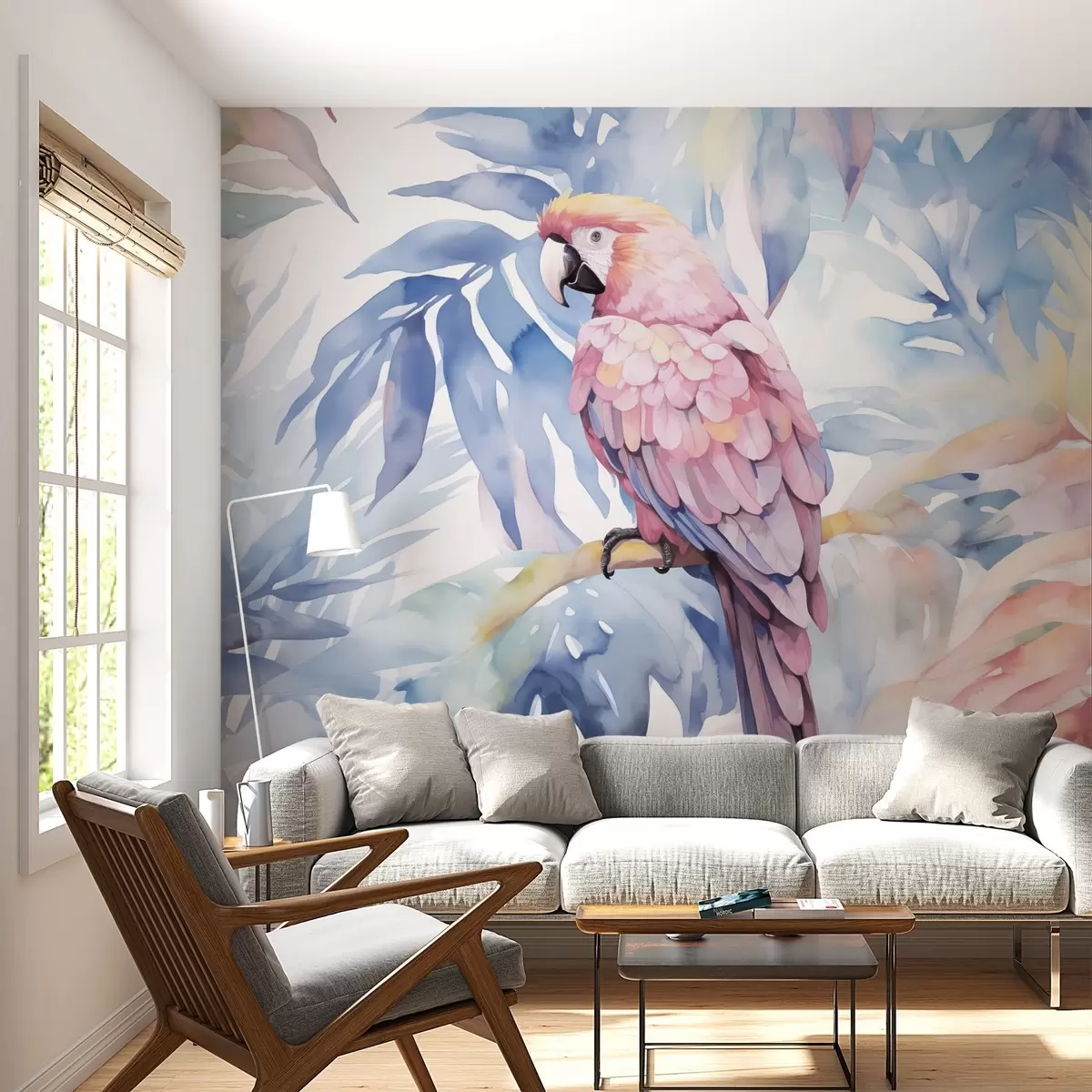 Fotomurales Loro rosa sentado en una rama imitación de pintura Nr. w02330