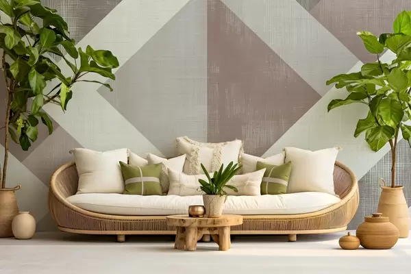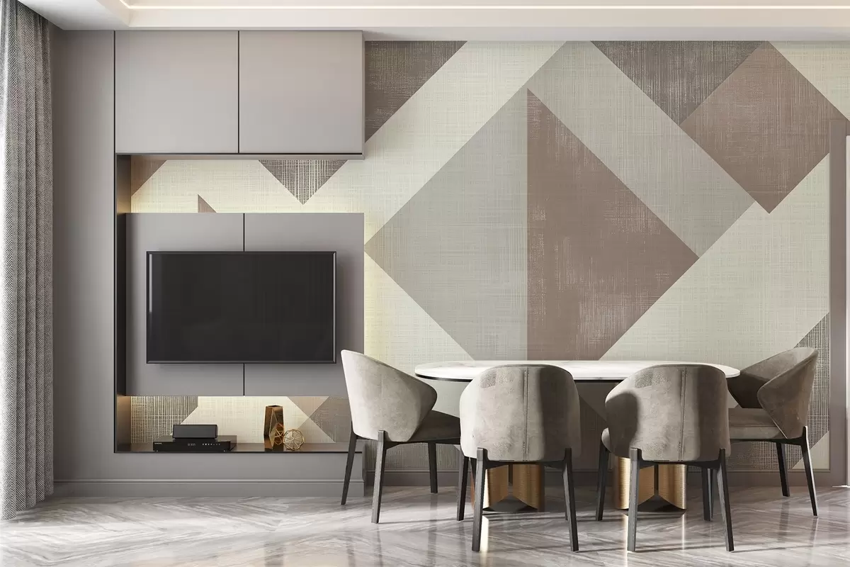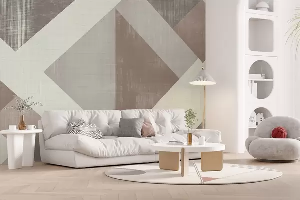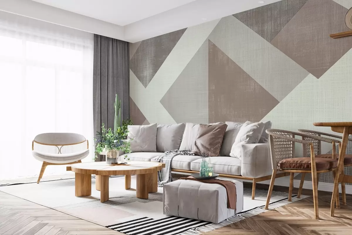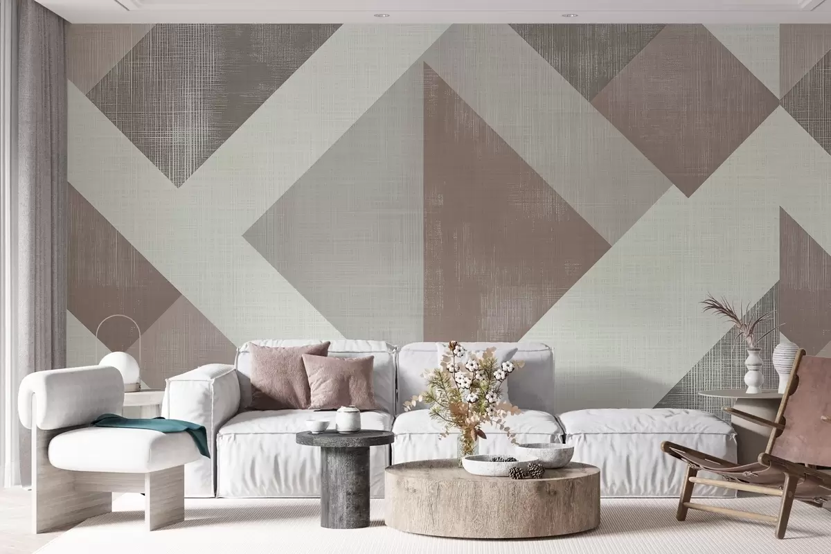 murales de pared Moderno diseño geométrico de papel pintado con formas superpuestas en suaves tonos beige, verde y gris w02341v1