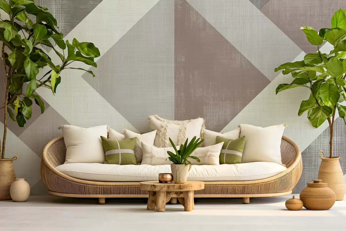 Fotomurales Moderno diseño geométrico de papel pintado con formas superpuestas en suaves tonos beige, verde y gris Nr. w02341v1