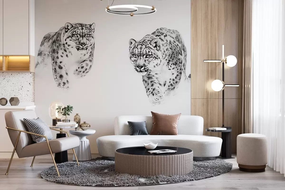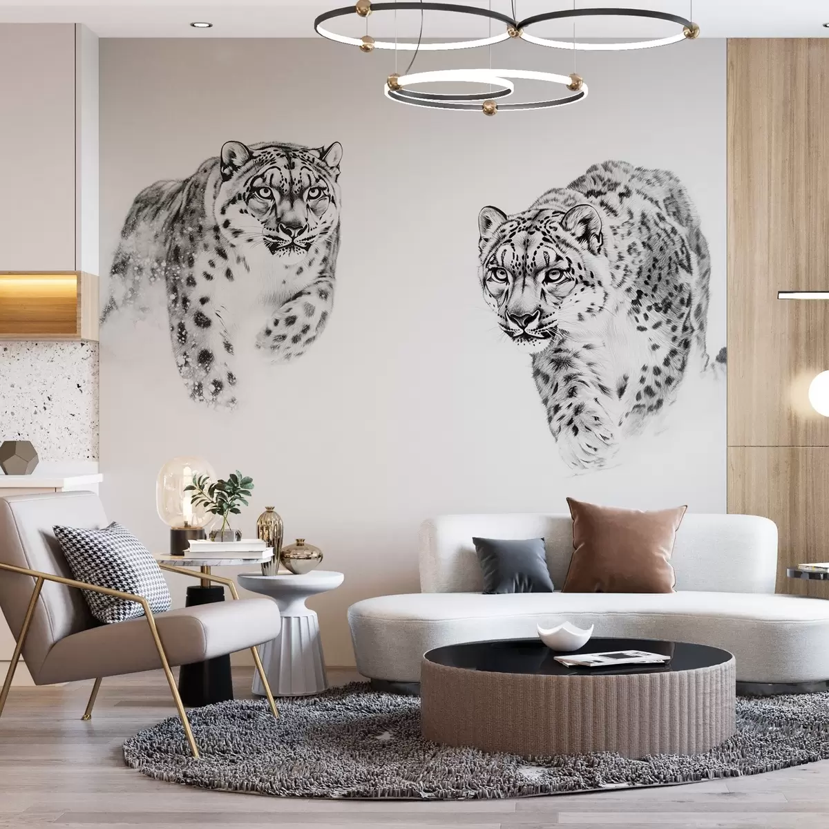Fotomurales Leopardos de las nieves, invierno, animales salvajes, dibujo a lápiz, minimalismo Nr. w02359