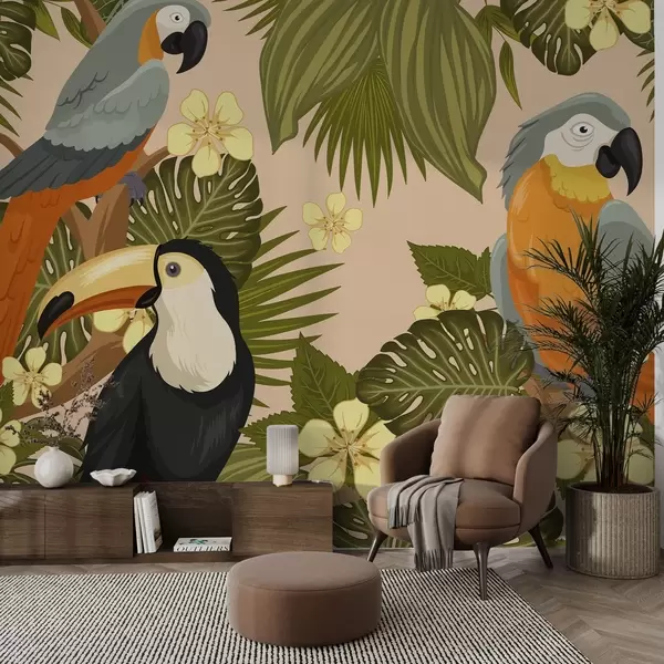 Fotomurales Brillantes loros y tucanes en amarillo Nr. w02365