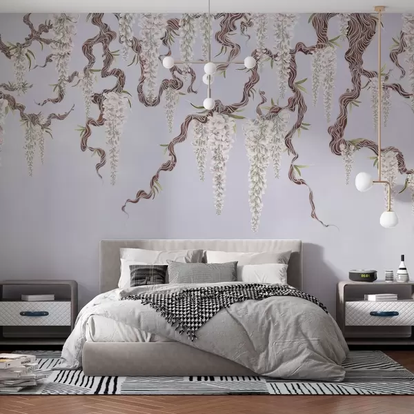 Fotomurales Glicinias rosas sobre un fondo grunge claro y pastel Nr. w02372v2