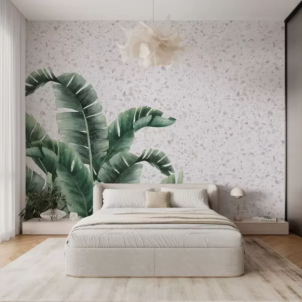 Fotomurales Hojas tropicales y fondo de terrazo Nr. w02376