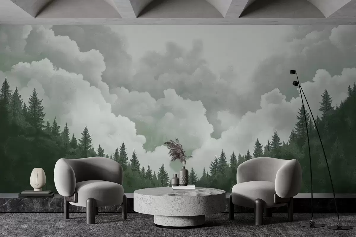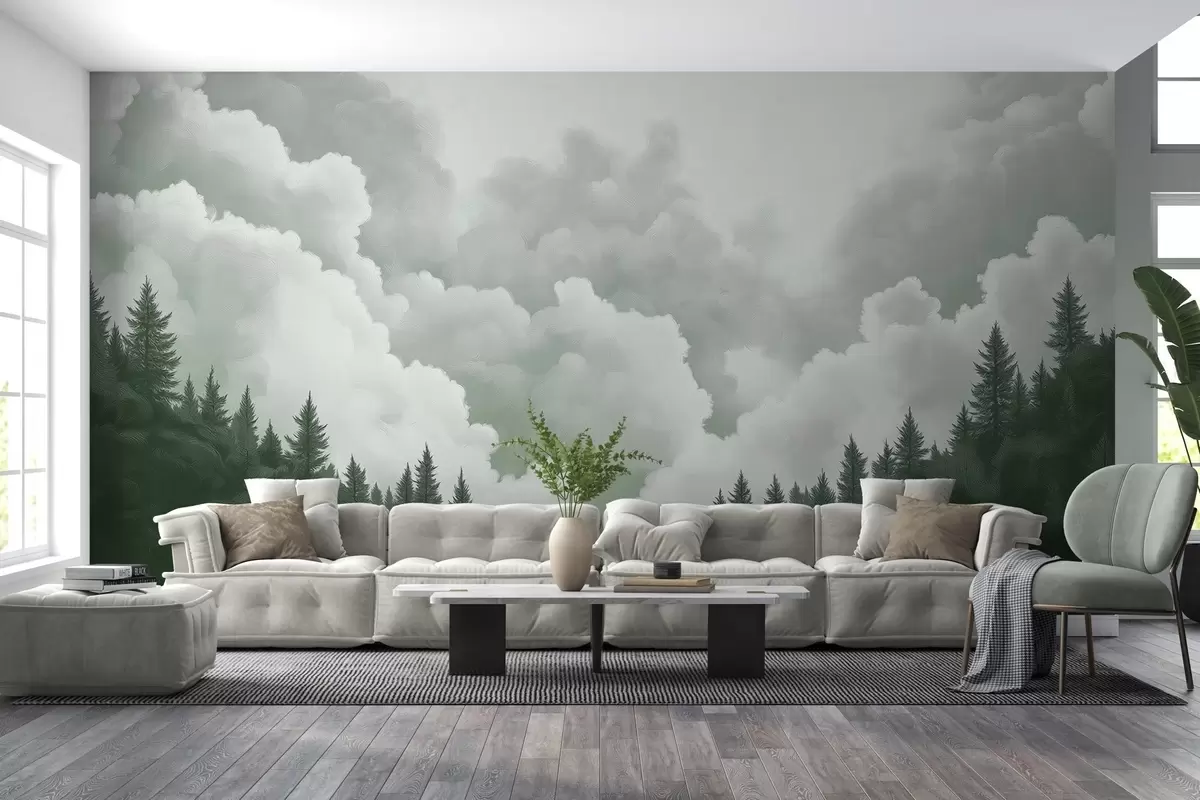 Fotomurales Nubes espesas pintadas al óleo sobre el bosque Nr. w02411v2