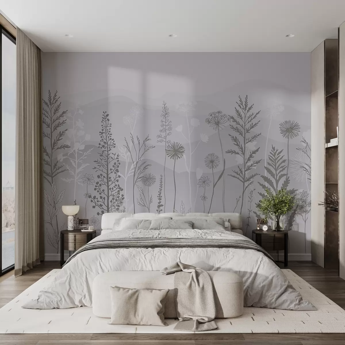 Fotomurales papel pintado ecológico, flores silvestres en tonos grises Nr. w02443