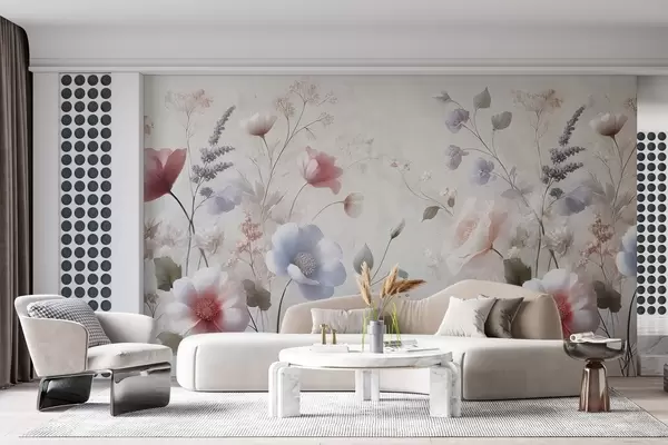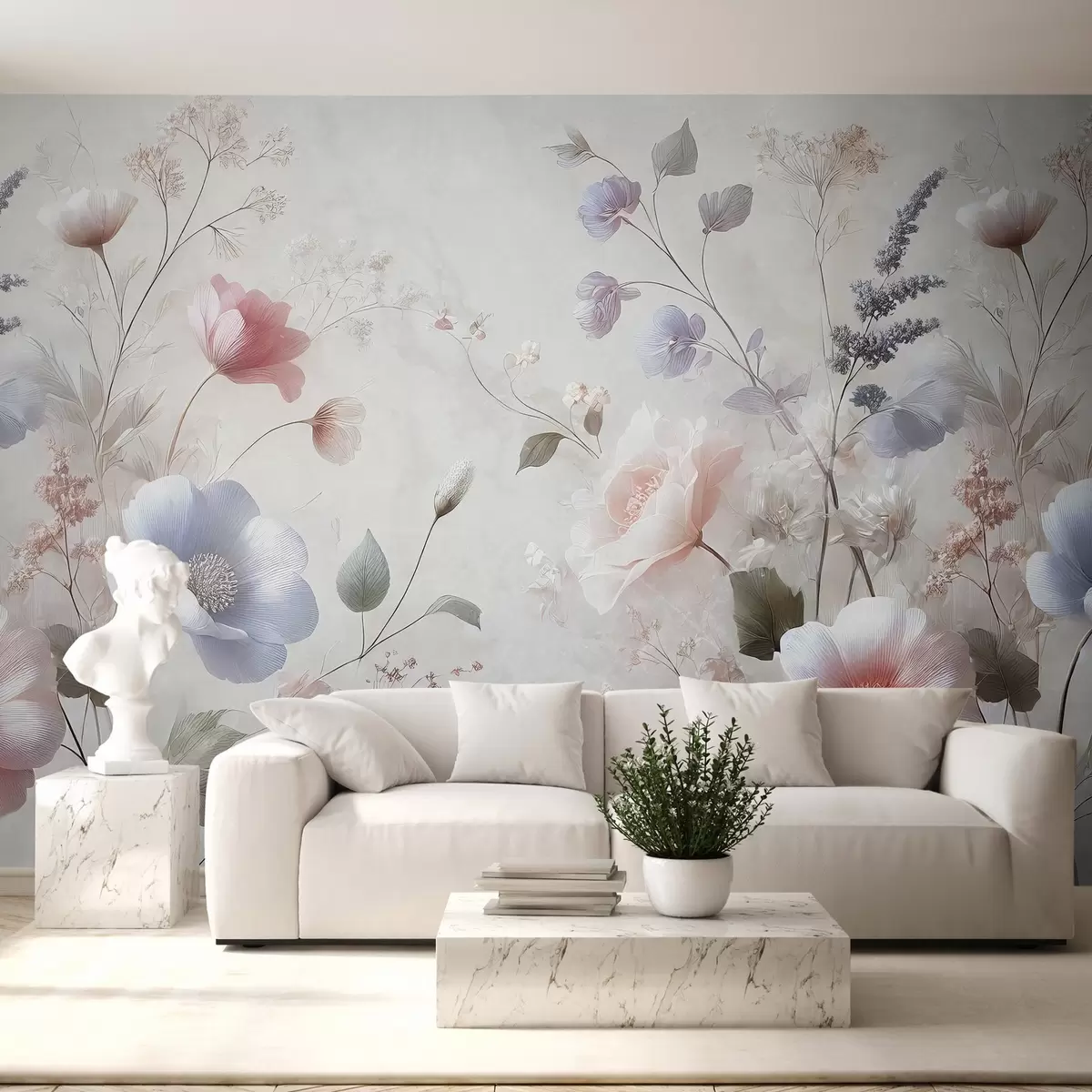 Fotomurales delicadas flores silvestres en colores pastel sobre un fondo texturizado Nr. w02454