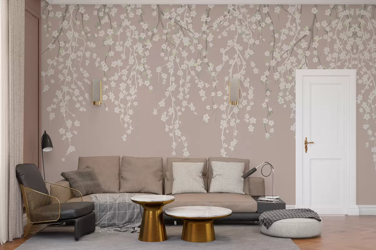 Fotomurales Ramas delicadas con flores sobre fondo pastel Nr. w02479v2
