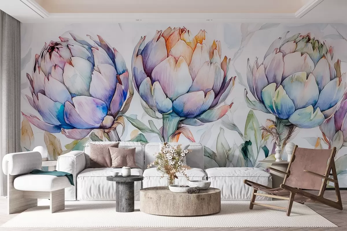 Fotomurales Bonito dibujo de alcachofas, estilo acuarela, colorido Nr. w02482