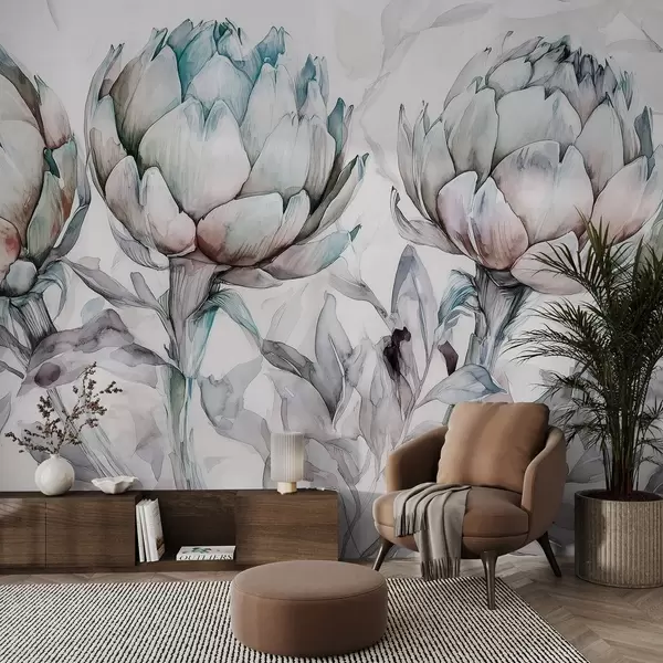 Fotomurales Bonito dibujo de alcachofas, estilo acuarela, colores suaves Nr. w02482v1