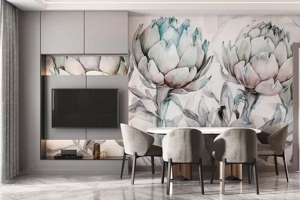 Fotomurales Bonito dibujo de alcachofas, estilo acuarela, colores suaves Nr. w02482v1
