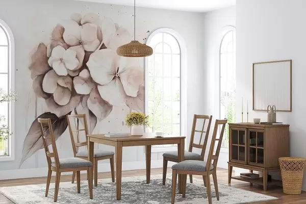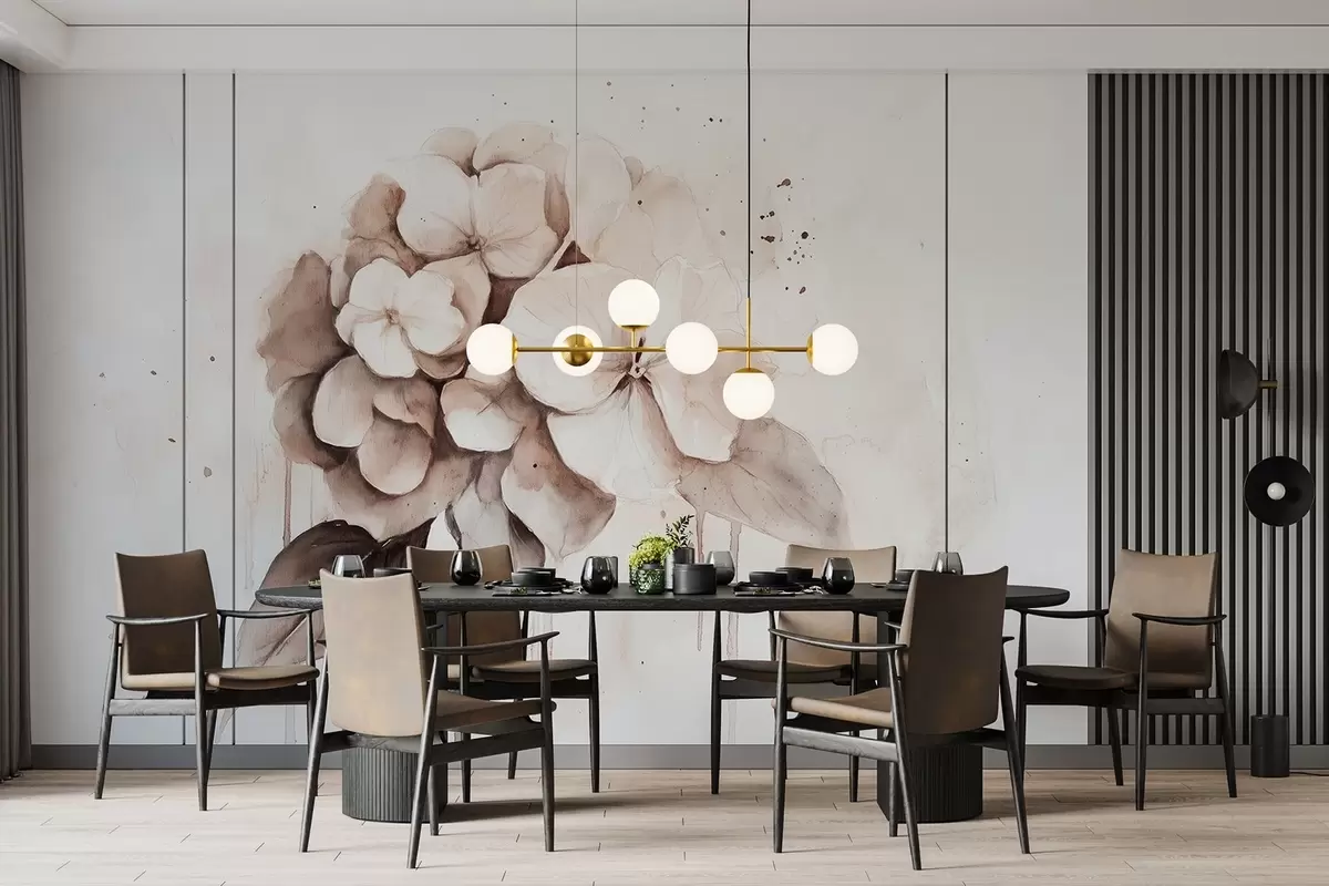 Fotomurales Dibujo de hortensia, estilo acuarela, colores beige Nr. w02483