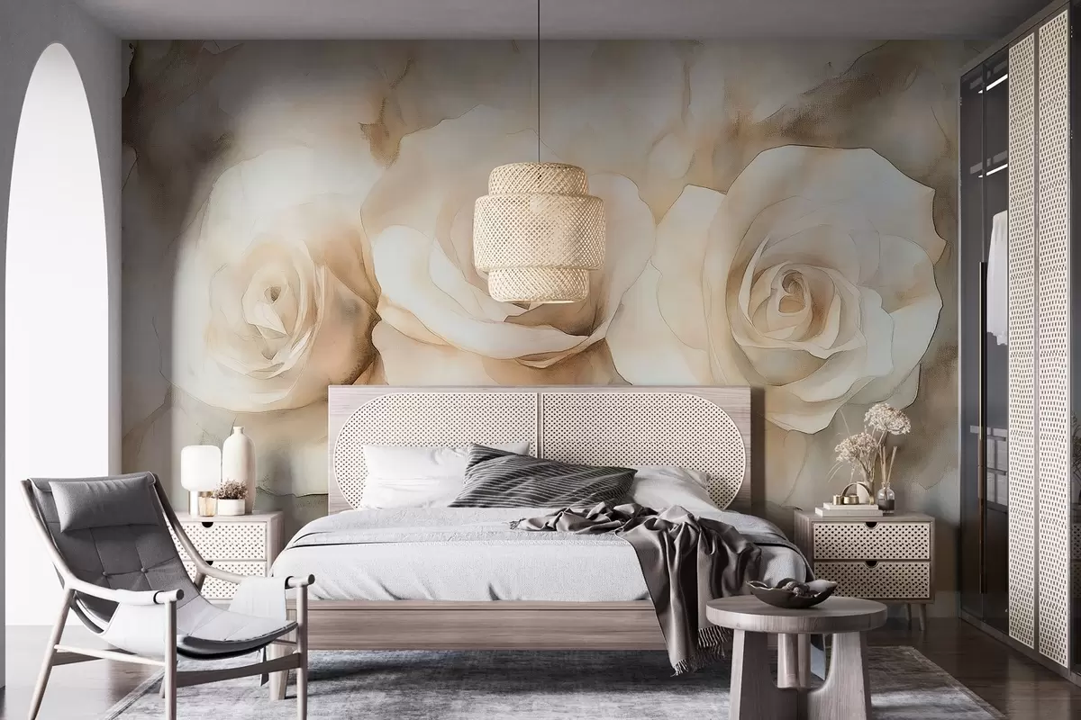 Fotomurales Hermosas rosas, estilo acuarela, colores beige, bohemio Nr. w02492
