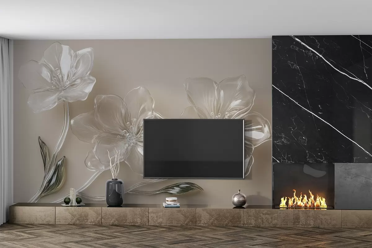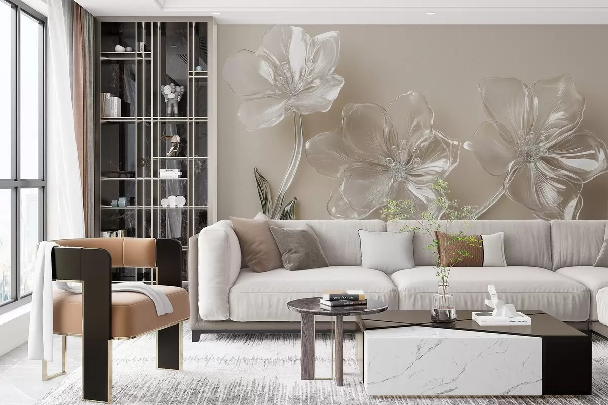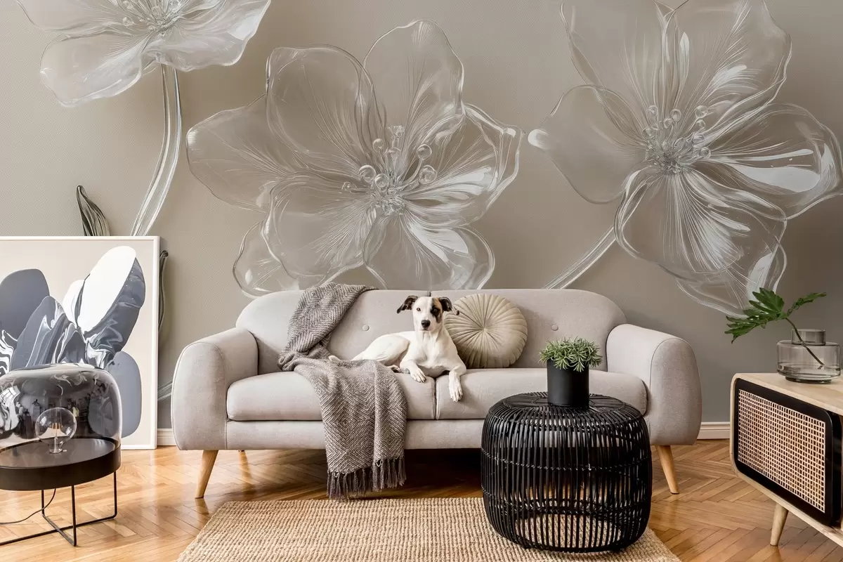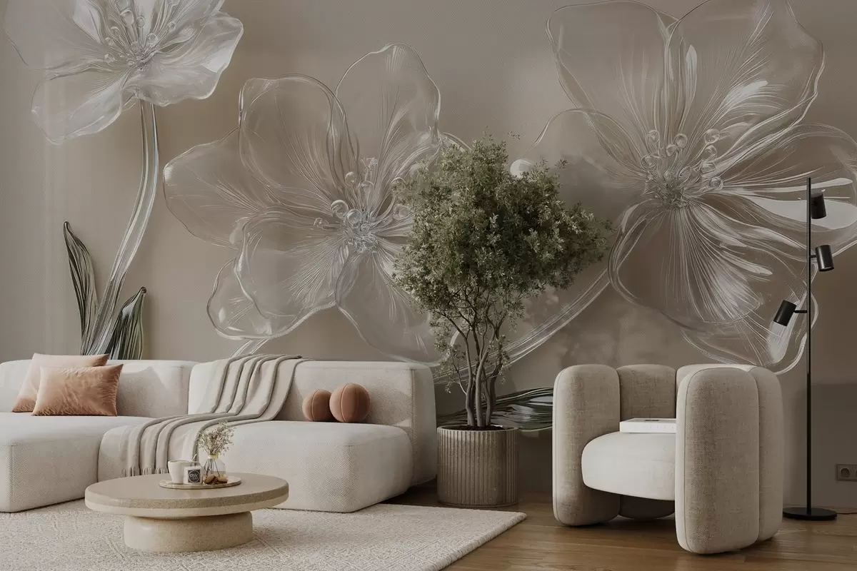 Fotomurales flores grandes imitación cristal sobre fondo beige Nr. w02518