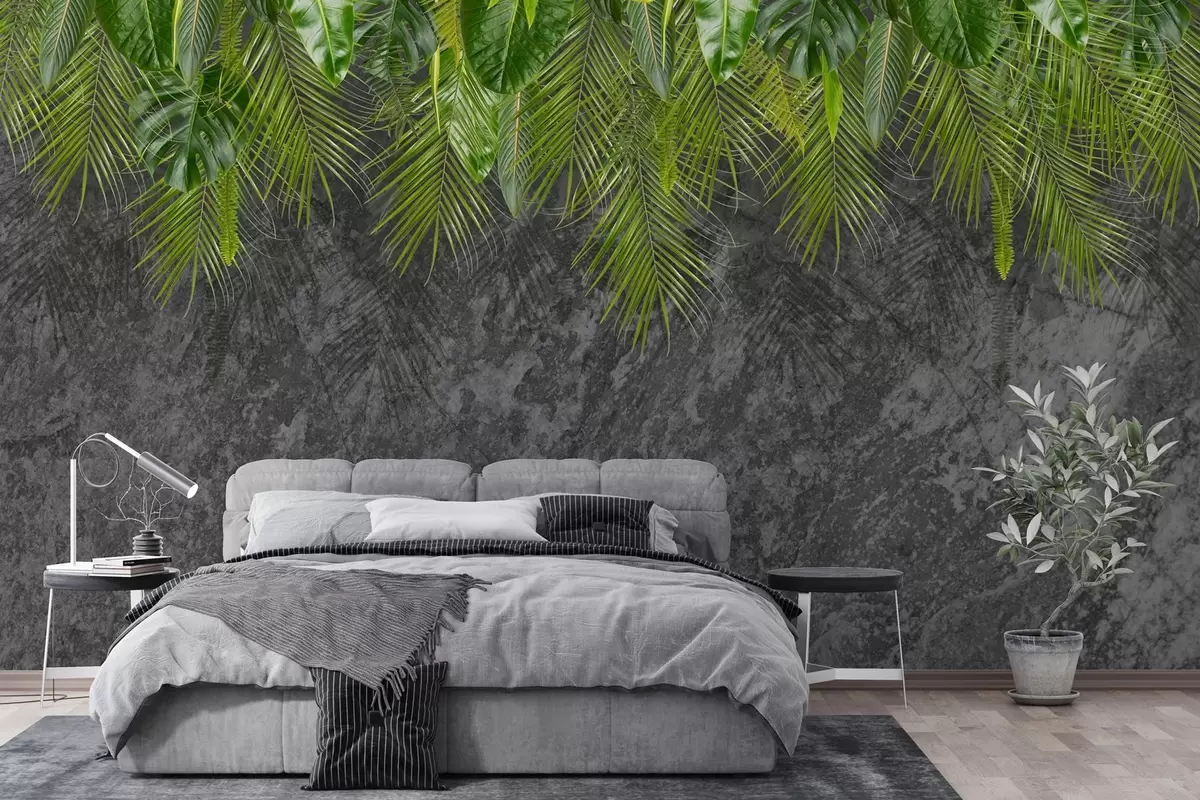 Fotomurales hojas tropicales sobre fondo de imitación piedra Nr. w02547