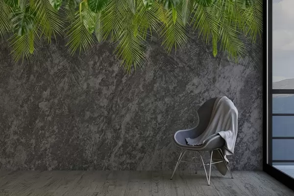 Fotomurales hojas tropicales sobre fondo de imitación piedra Nr. w02547