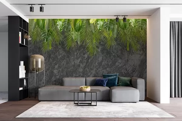 Fotomurales hojas tropicales sobre fondo de imitación piedra Nr. w02547